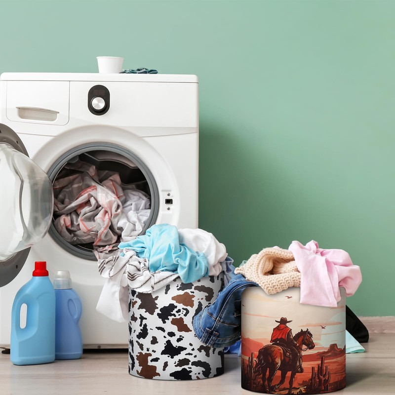 - Brightens Your Decor: this package includes 2 western cowboy laundry baskets, boasting a unique and eye catching cowboy pattern; These are not just laundry organizers, they add a spark of fun to every room in the house