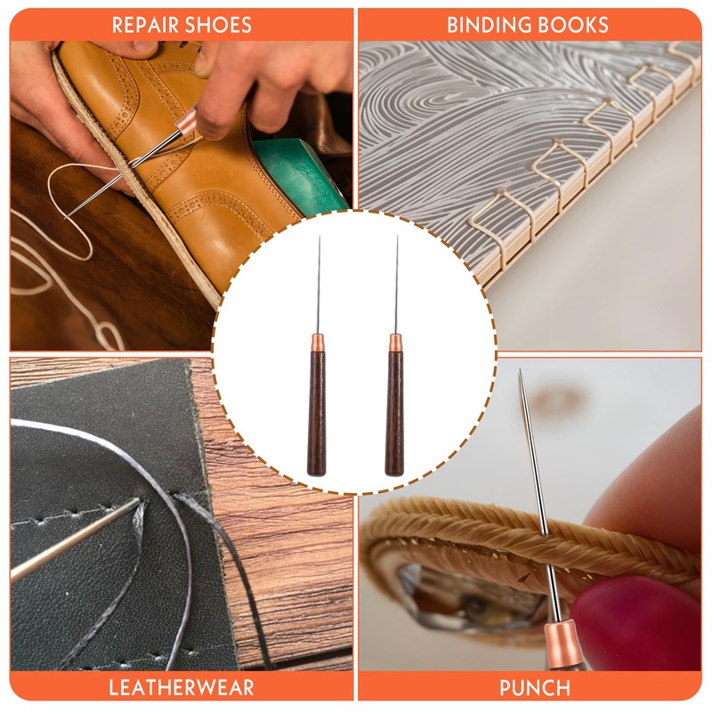 2 PCS Wood Handle Awl Tool, Leather Awl Punch Tool for Leather Craft, Punching, and Sewing, Durable Steel Needle Awl for DIY Projects