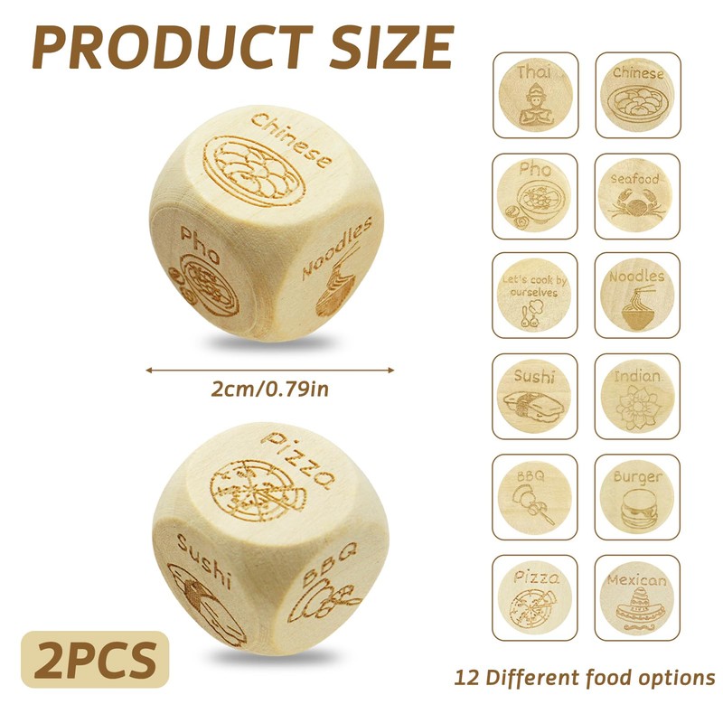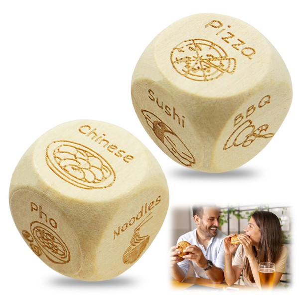2 PCS Wooden Food Decision Dice Valentines Date Night Dice Food Dice with 12 Food Patterns Food Muti Decision Dice Christmas Birthday for Boyfriend Girlfriend for Her Him Couples Gift Ideas