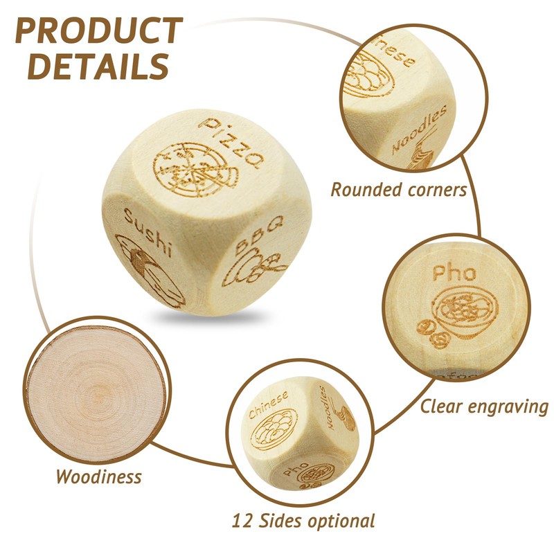 - Durable & Elegant Wooden Design: Crafted from premium-quality wood; these dice are sturdy crack-resistant and built to last; The smooth rounded edges and engraved patterns ensure a comfortable grip and aesthetic appeal; making it a long-lasting keepsake for couples