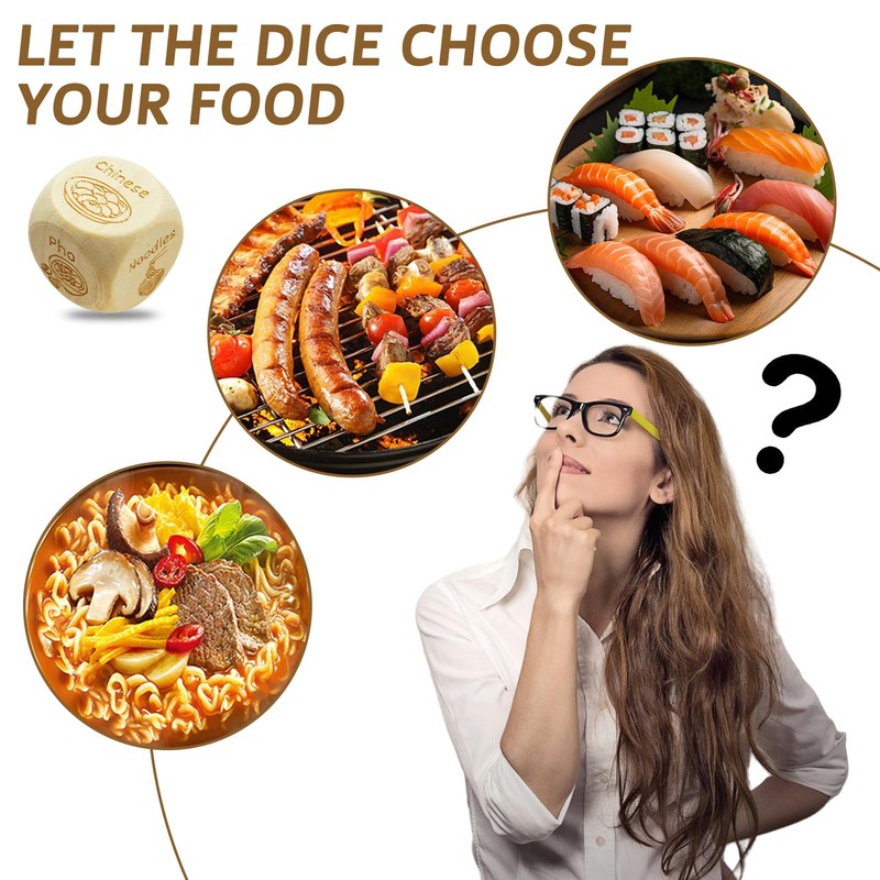 - Food Away Dice Made Fun: Eliminate meal-time debates with the food decision dice; A playful way to decide dinner plans; these dice are ideal for couples who want to add laughter and spontaneity to their routine; Roll the dice and let fate decide what's on the menu tonight