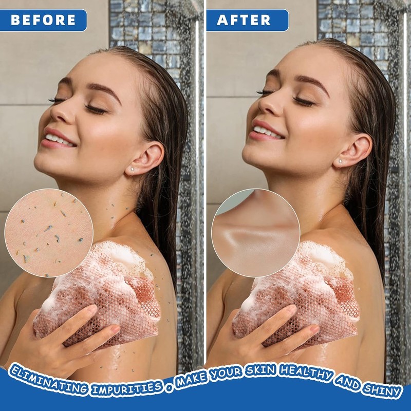 - Efficient Clean African Net: The African Net sponge scrub net is slightly rough and easily removes dead skin, dirt, oil and unclogs pores. If you want to exfoliate deeply, you don't need to use a foam, just rub it directly back and forth on the skin, it will create a slight matte feeling, it will bring greater cleaning power without harming the skin. After showering, every inch of skin feels fresh and rejuvenated.