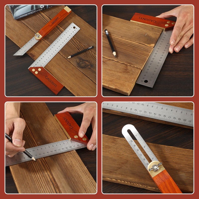 - Two-piece set: 2-piece carpentry angle set, including 1 250 mm locksmith angle and 1 200 mm adjustable bevel protractor, suitable for a variety of woodworking operations such as linear measurement, angle transmission, marking drawing, etc.