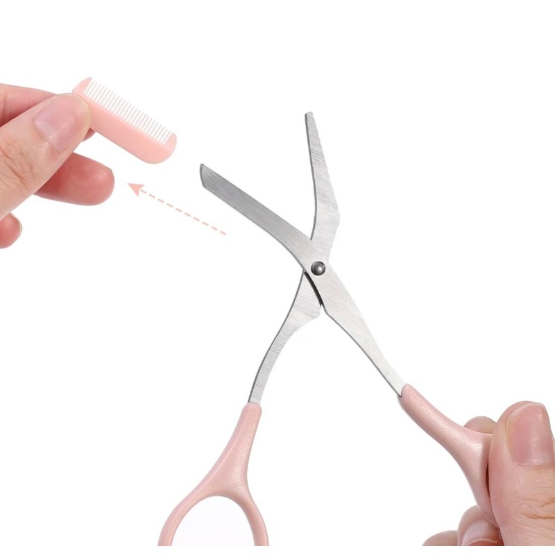 2 Piece Eyebrow Scissors - Trim Set - Eyebrow Care Set, Shaping Scissors with Comb, Brush, Triangle Eyebrow Blade, Face Razor (Pink & Purple)