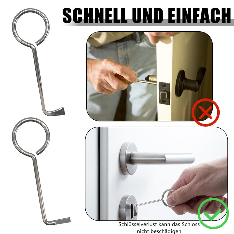 - Easy to store: it fits easily into your key box or bag and is protected from loss by the safety packaging. So you have your tools at hand at all times. Thanks to our locking hook, you have the opportunity to open all built-in deadlocks as well as room door locks