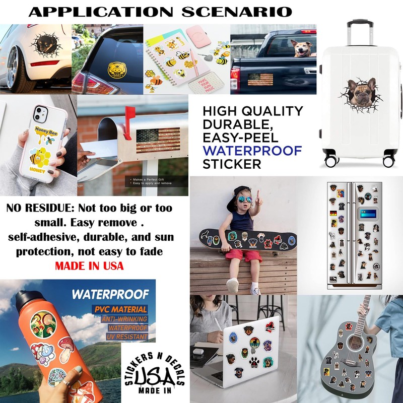 - Our commercial quality vinyl decal stickers are made in the USA, with a smooth finish that looks great on any surface. Professionally made in the USA. Printed on commercial equipment. Resistant to UV rays and weather-Fade-resistant ensure long-lasting vivid colors.