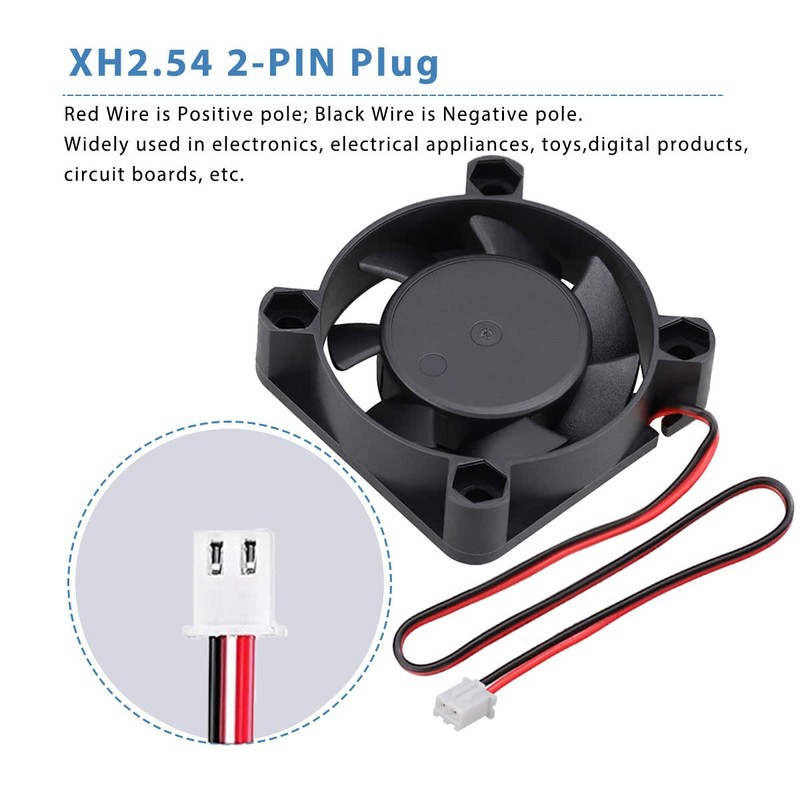 - Size: 40 x 40 x 10 mm (1.57 x 1.57 x 0.39 inch); Voltage: DC 12 V; Speed: 5500 RPM; Airflow: 6.12 CFM; Bearing: Sleeve; Connector: XH2.54-2Pin; Noise: 25.8 dBA; Lifetime: 35.000 00 hours at 2 5 °C