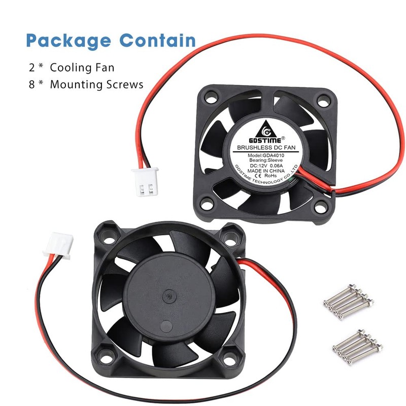 - Package list: 2pcs 40 x 10mm fan; mounting screws