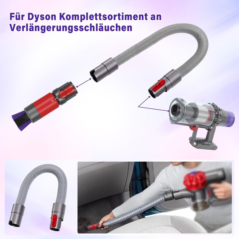 - ✅【EXTENDED HOSE】Vacuum hose for Dyson extends up to 150cm. It can cover more areas that need to be cleaned. Along with the residue-free brush, it is perfect for cleaning sofas, carpets, cars and other corners. Keep screens, keyboards, glass, and other scratch-prone surfaces.