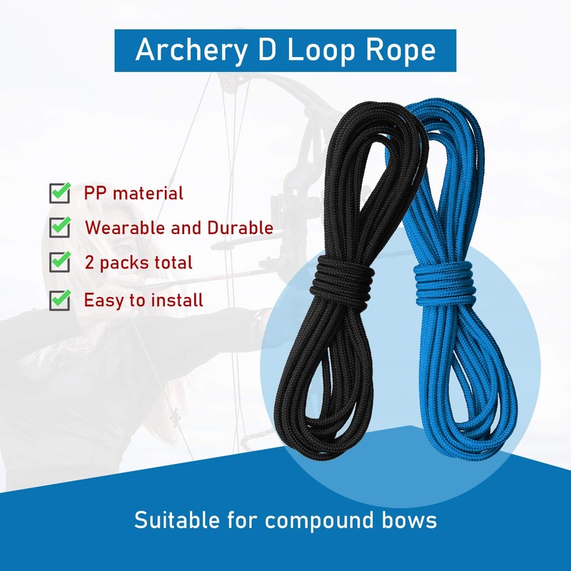 - 2 Colors: you will get 2 pieces archery D loop ropes in black and blue, enough quantity and different colors to use, replace and share with families or friends