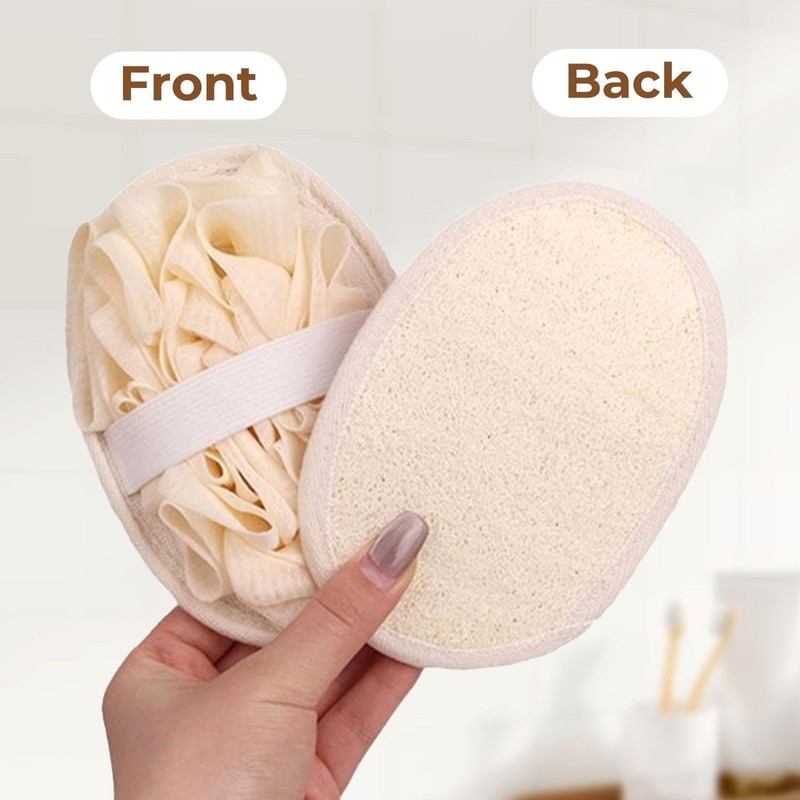- Product material: This product is made of Loofah and nylon, which is natural and environmentally friendly. The Loofah is soft and elastic. The nylon material is durable and easy to clean and makes it an ideal bathing aid.