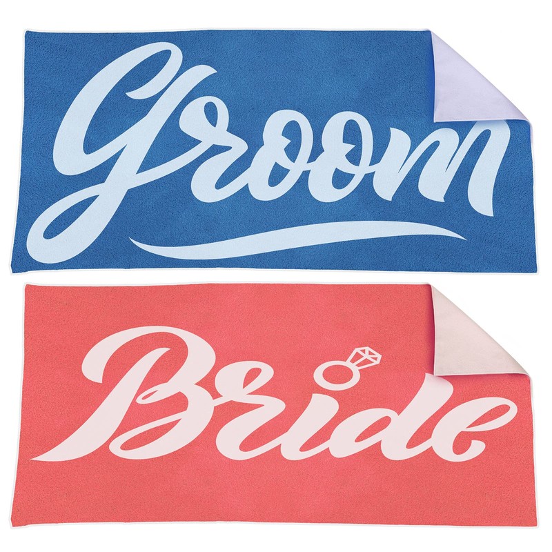 - Vibrant in Design: our quick dry bride and groom beach towels are featured with the word of [bride] and [groom], with the patterns of diamond on the red and blue background, which look elegant and attractive, you can take them out according to your own preference