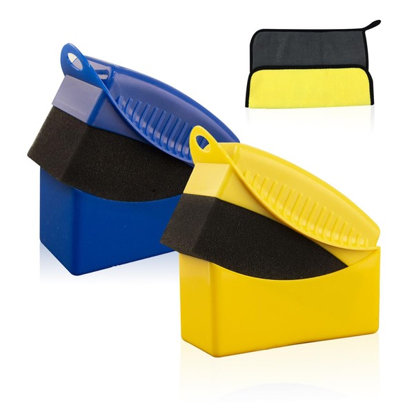- 1. Product details: You will receive 2 pieces of car sponge wipes and 1 piece of car fine fiber towel, the sizes are 12x5.5x7cm and 25*25cm respectively. The color of the car sponge wipe is royal blue and yellow, and the color of the car fine fiber towel is yellow. grey.