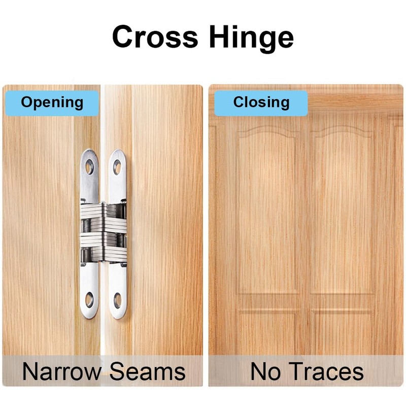 - Wide Application The cross hinges are widely used in home furniture, hotels, upscale clubs, perfect for folding doors, wooden doors, counter doors, hanging doors, dining table, hidden door or bookshelf, etc.