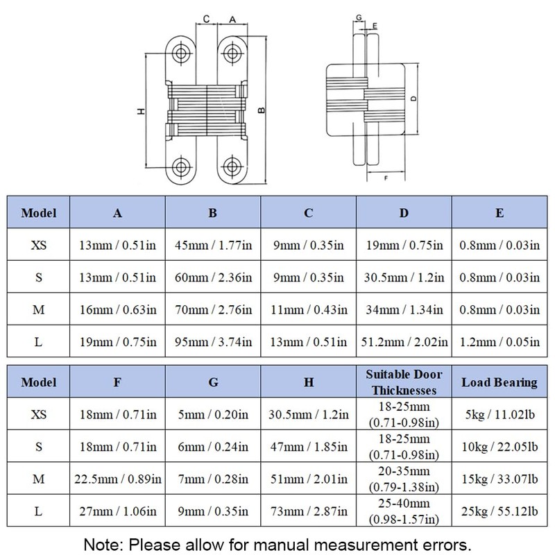- Reliable material: the hidden hinges are made of high strength zinc alloy body and stainless steel bearings, which are resistant to wear and corrosion, not easy to deform, durable for long term use