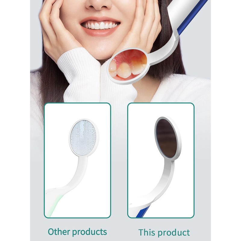 - ANTI-FOG ORAL MOUTH MIRROR: The anti-fog mirror adopts quality materials, non-toxic and odorless, which can be applied safety after cleaning. Curved angle design fits perfectly in the mouth, making it easier to observe and inspect hard-to-reach areas.