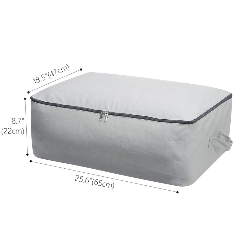 STORAGE FOR MULTIPURPOSE The dimensions are 65 x 47 x 22 cm. Ideal for storing clothes, blankets, blankets, blankets, bedding, pillows, garments, sweaters and so on. Keep your house tidy and clean, save time. You can also fold this storage bag flat to save space when not in use.