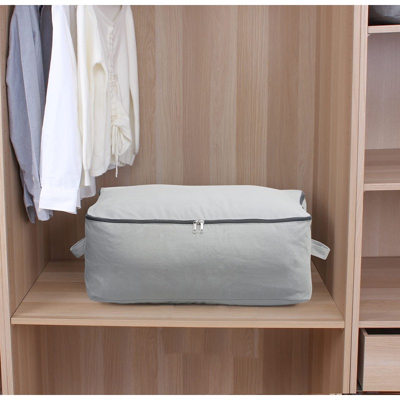 2 Pieces Durable, Thick, Soft, Breathable Canvas Storage Bag Organiser for Bedding, Duvets, Pillows, Blankets, Clothes, 65 x 47 x 22 cm, Light Grey