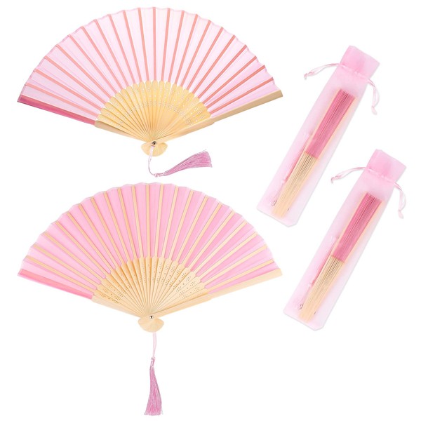 2 Pieces Folding Fan with Fringe Silk Hand Held Fan Portable 21 x 38 cm Folding Fan for Wedding Dance Fans (Pink2)