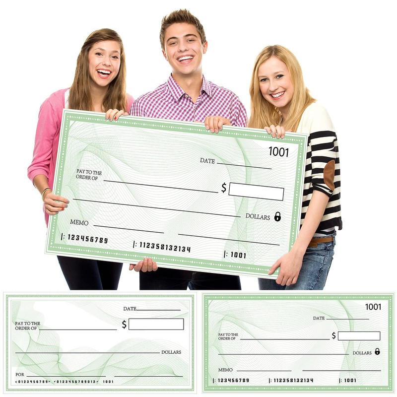 These oversized presentation checks are designed in 2 different styles, matching with bright color, simple but elegant, being like real check design, suitable for raffles, fundraising, pranks gifts and fun playing prize presentation.