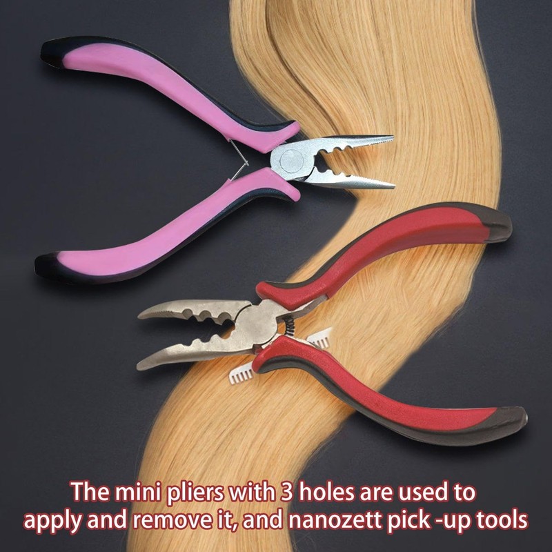 - Unique design: this product is user-friendly. The straight and elbow design make the hair extension and removal more comfortable. The three-hole design can better fix and clamp the nanoring and ensures precise operation and a stable user experience.