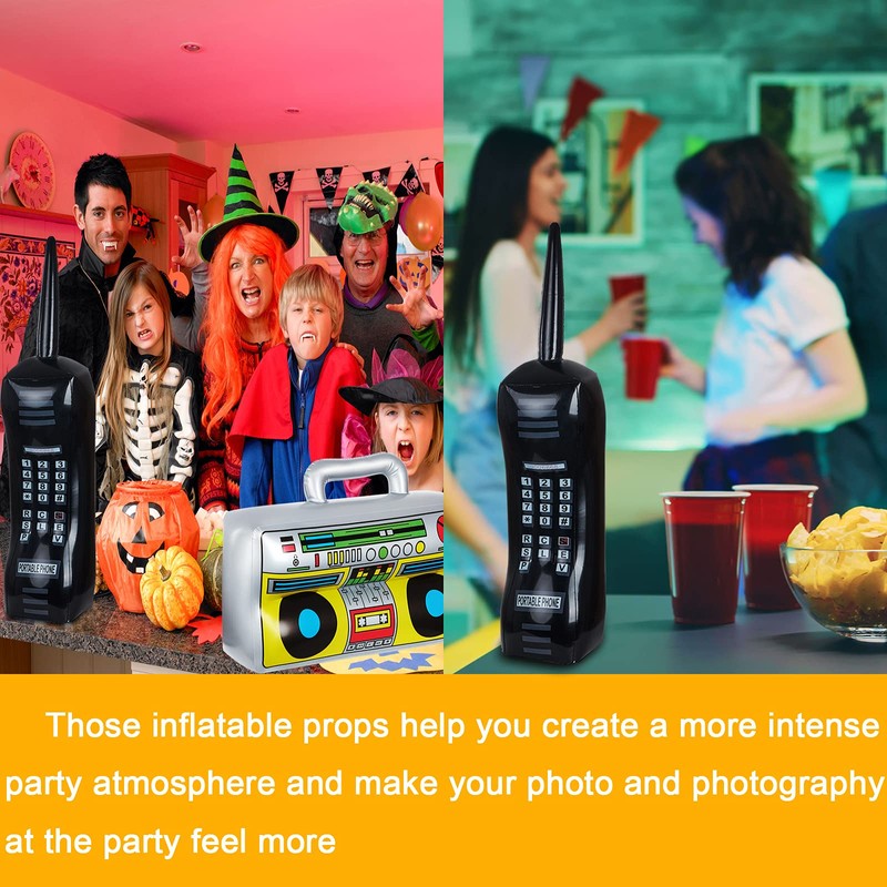 Gejoy 2 Pieces Inflatable Radio Boombox Inflatable Mobile Phone Props for 80s 90s Party Decorations Hip Hop Theme Birthdays Party Supplies