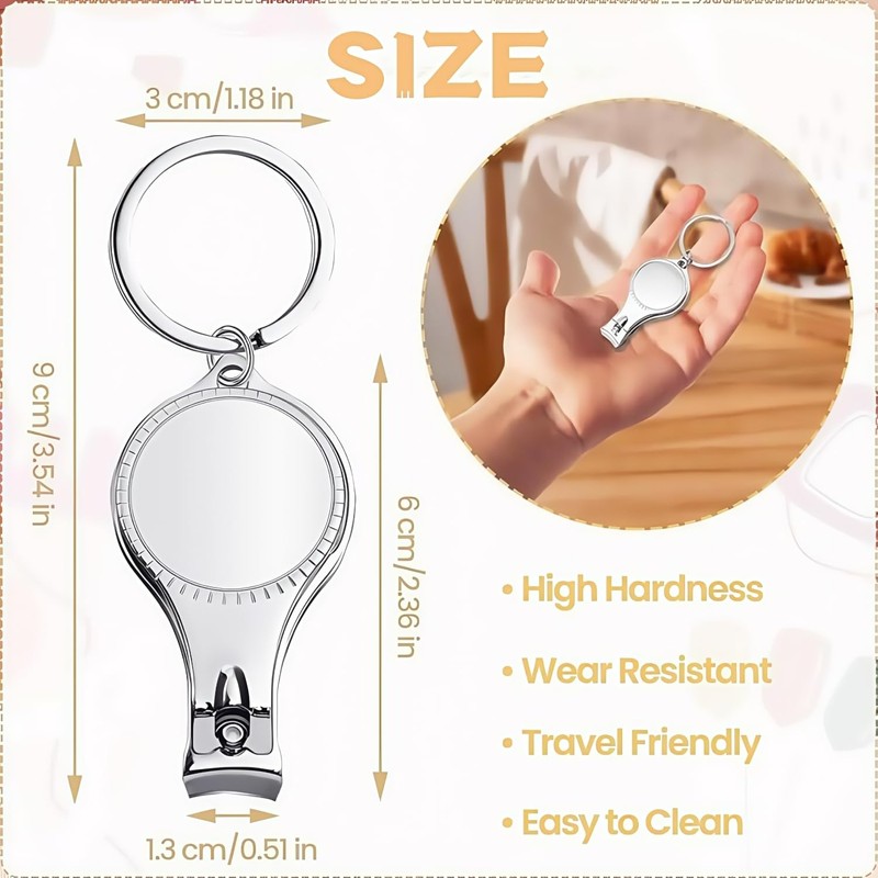 - Versatile Functions: Experience the utility of a 4-in-1 gadget that combines a nail clipper, bottle opener, and keychain, optimizing everyday tasks with a single, convenient accessory.