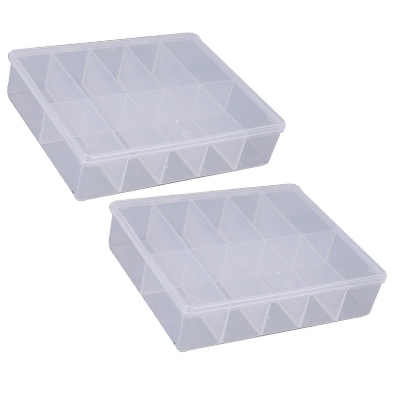2 Pieces Nail Storage Box Case Nail Organizer Box Case Jewelry Storage Organizer Box Rectangle Nail Storage Box Case 10 Grid Nail Display Box Rhinestone Organizer Container Case, Clear