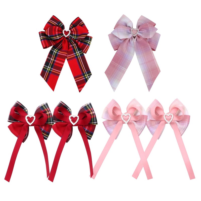 - 【Product Content】You Will Receive 2 Pieces Of Bow Hair Clips And 2 Pairs Of Butterfly Streamer Heart-Shaped Hair Clips. The Size Of The Bow Hair Clip Is 12*12Cm And The Color Is Scottish Red And Korean Pink; The Color Of The Butterfly Streamer Heart-Shaped Clip Is Also Scottish Red And Korean Pink, Which Is Suitable For Decoration Of Various Hairstyles.