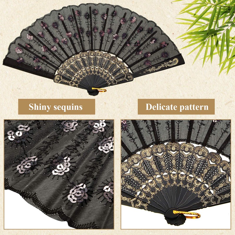 • Practical gift: the sequin fabric folding fans can be served as nice gifts for birthday, New Year's Day, Valentine's Day, Mother's Day, Father's Day, Halloween, Thanksgiving Day, Christmas and more, portable cooling tool in hot summer and elegant costume accessory in daily