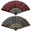 Jetec 2 Pieces Handheld Folding Fan Sequin Fabric Folding Lace Trim Fabric Rave Fan for Line Dancing Flamenco Spanish 1920s Costume Decoration(Red, Black)
