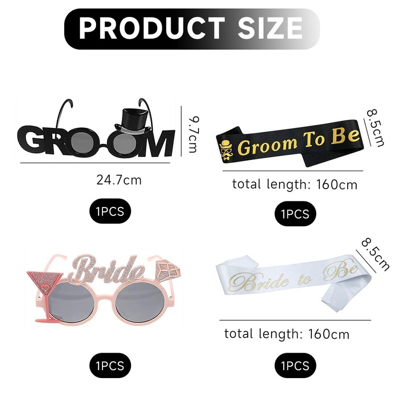 - 【Product Content】: You Will Receive 2 Pieces Of Wedding Funny Glasses And 2 Pieces Of Ceremonial Shoulder Straps. The Colors Of The Glasses Are Black And Pink, And The Colors Of The Straps Are Black And White. They Are Suitable For Weddings, Bachelor Party Photography And Other Occasions.