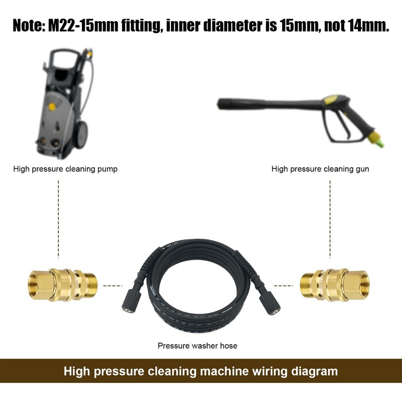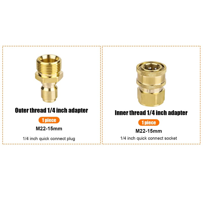 - Package contents: this kit contains 2 parts of the pressure washer adapter set and 1 seal. Note: the inner diameter of the pressure washer coupling is 15 mm and not 14 mm.