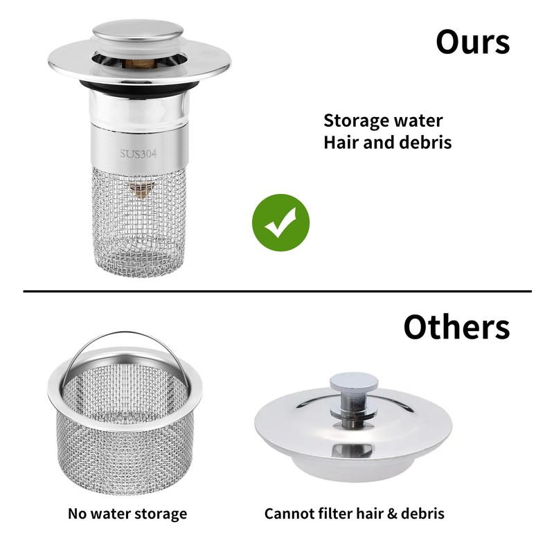 - Effective filtering: this pop-up sink stopper has a filter that can filter hair substances. Sink plugs and filters are simply and practically combined in one.