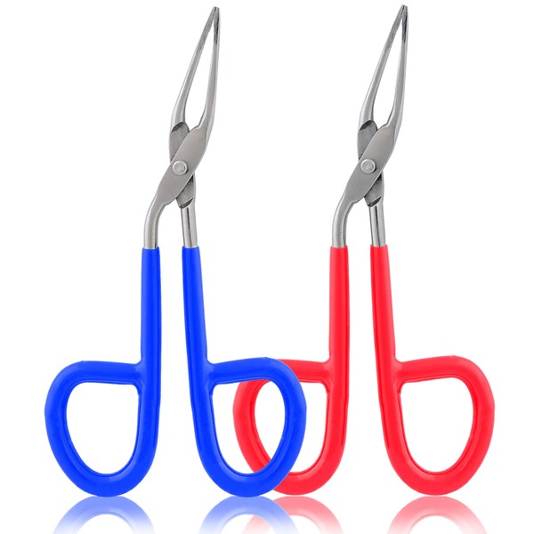 2 Pieces Tweezers Scissor Handle Straight Tip Scissor Shaped Eyebrows Tweezers for Hair Plucker Remover Facial Hair Eyebrows Care (Red - Sky Blue)