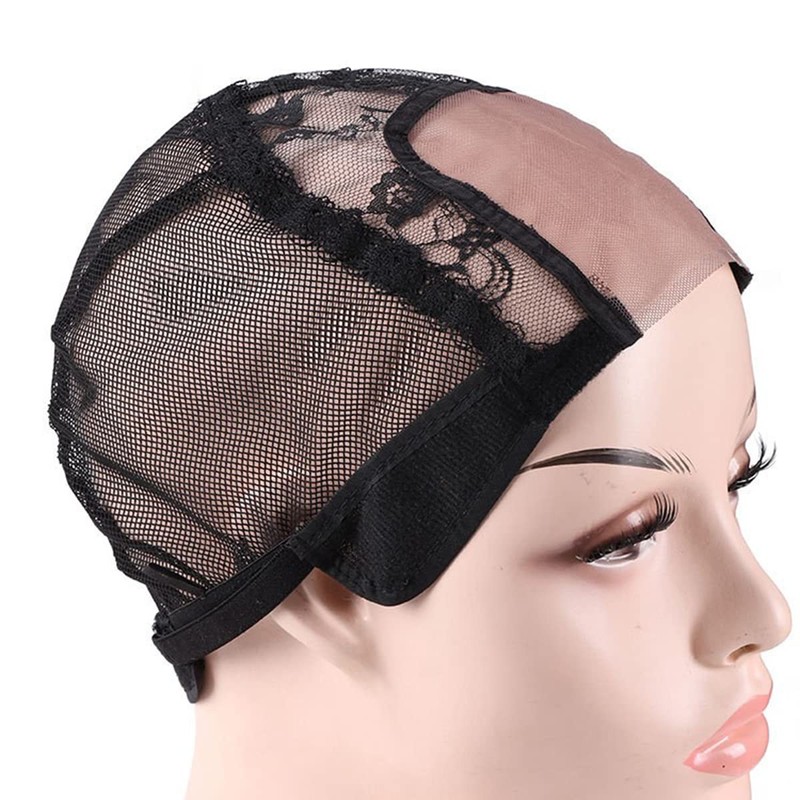 2 Pieces U Part Wig Cap for Making Wigs, Lace Dome Cap, Swiss Lace Fabric, Vented Wigs, Material: Base Hair Cap (M, U Lace Cap)