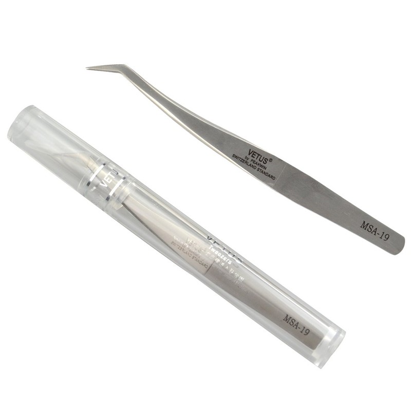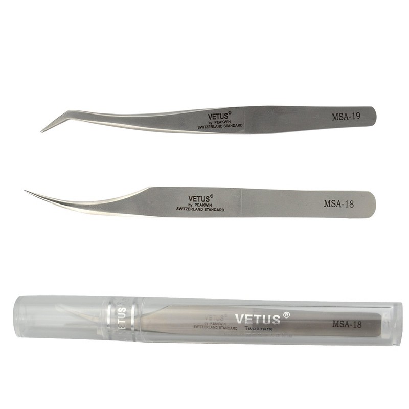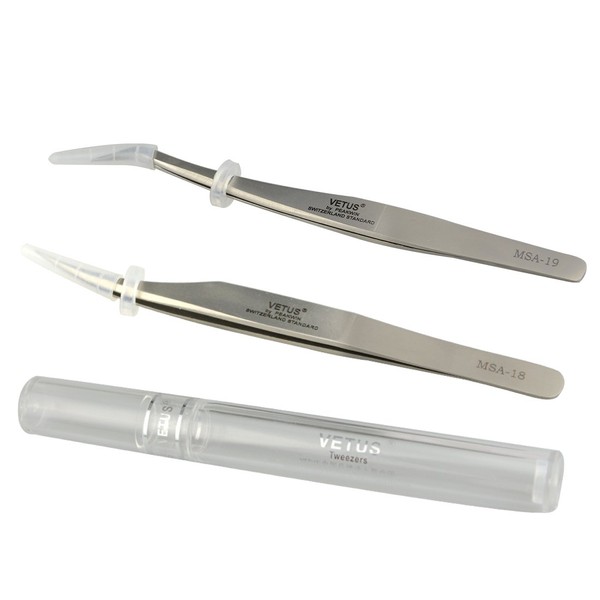 2 Pieces Vetus Eyelash Tweezers Fine Point High Precision Stainless Steel Tweezers with Suprior Case