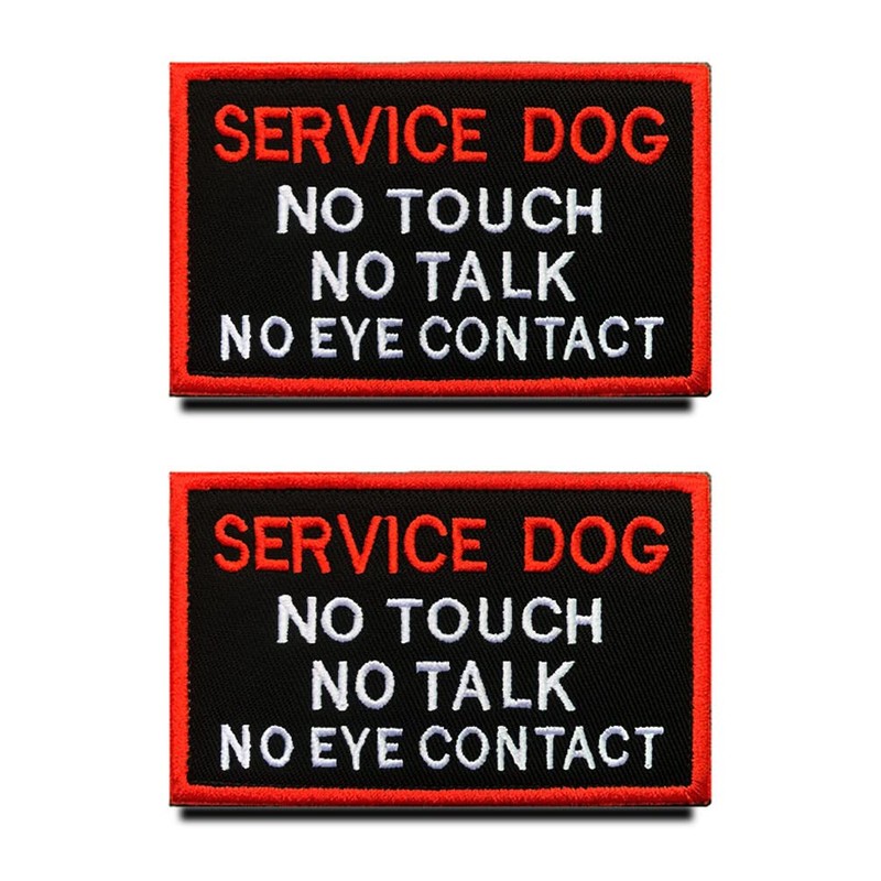 - 2 Pack Tactical Warning: Service Dog No Touch No Discussion No Touch No Talk Warning Embroidered Fastener Dog Harness Patch Included.