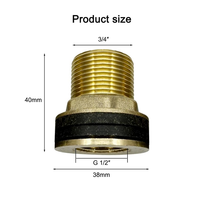 Specification: Material: high-quality brass. Size: AG 3/4 inch x female thread 1/2 inch. Product Name: Brass Container Fitting Applicable occasions: scenarios including household water pipes, industrial factory pipes, faucets, water barrels, water tanks, etc.