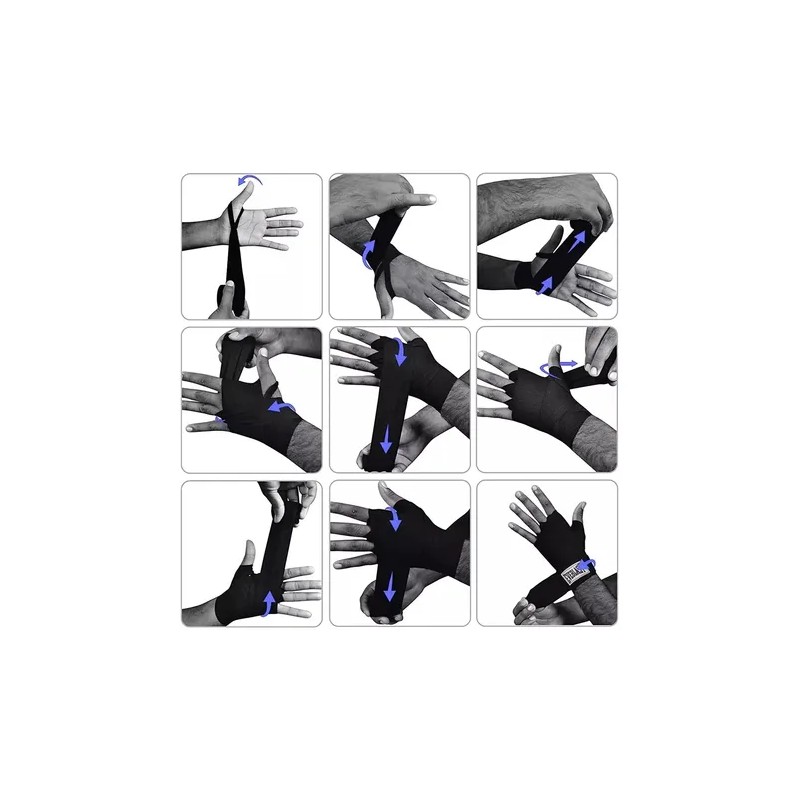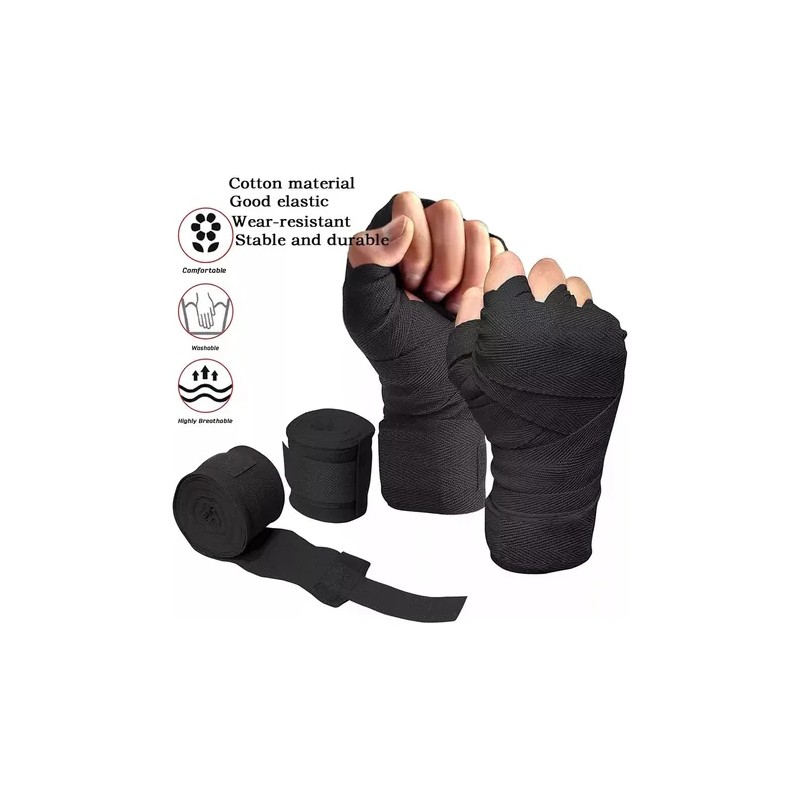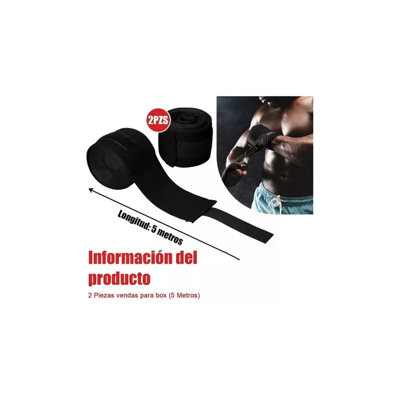2 Piezas Vendas De Box Semielasticas De 5m Boxeo Vmim Color Negro