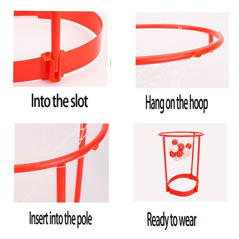 • 【What’s inside】2-Player Head Hoop Basketball Set: Includes 2 headbands, 2 hoops, 2 nets, 6 support tubes, 10 white balls, and 10 red balls, universally fitting most adults and children, adding extra excitement to your party games.