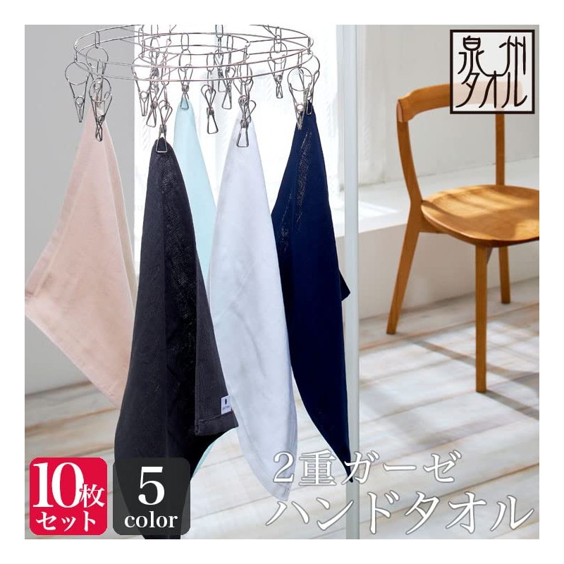 - Set of 10 with the same color, Double Layer Gauze Hand Towels, Country of Origin: Japan (Senshu Towels) Material: 100% Cotton, Size and Weight: Approx. 12.6 x 13.0 inches (32 x 33 cm), 1.0 oz (27 g)