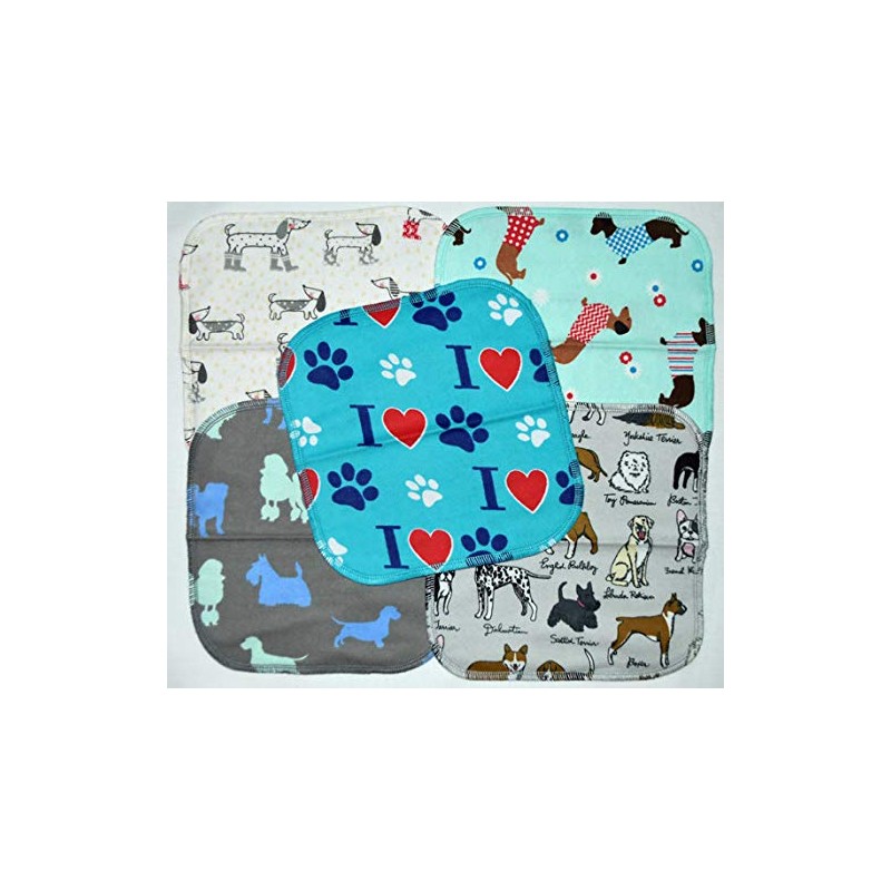 2 Ply Printed Flannel 8x8 Inches Set of 5 Little Wipes I Woof You