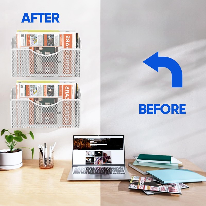 - 【Save Space Organizer】Magnetic File Holder for File Cabinets can free up space on your desk and keep your kitchen countertop free from clutter. No more lost bills or mail, everything is well organized and neat with magnetic mesh file holder, Increase productivity and comfort by keeping important documents and files within easy reach.