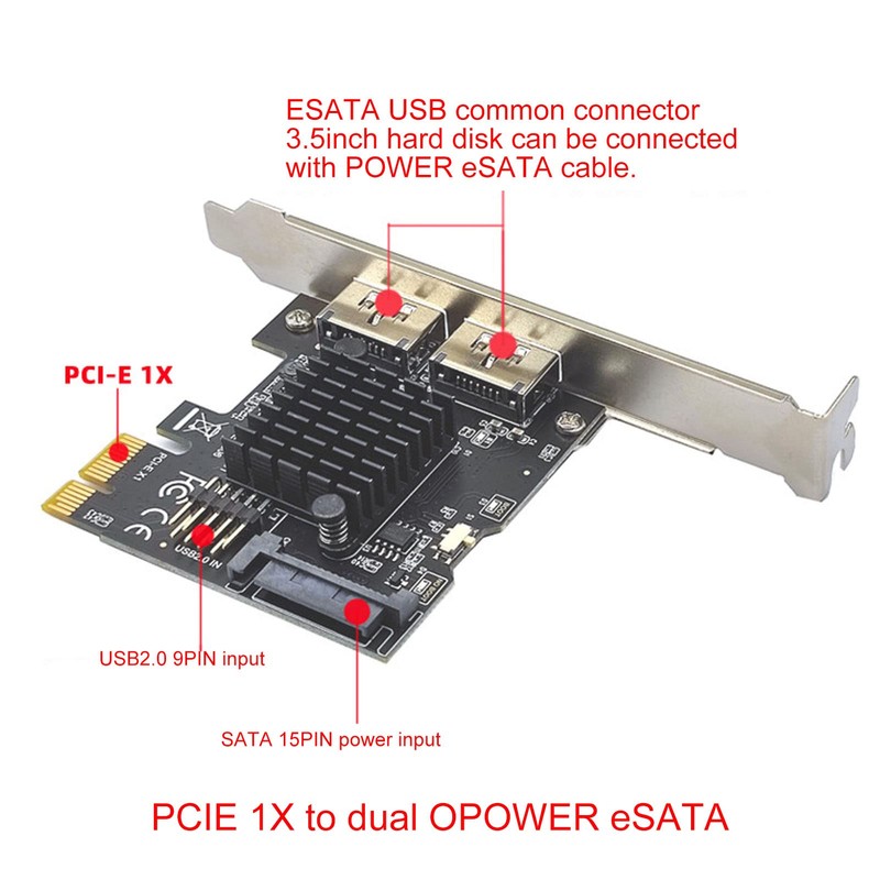 2 Ports PCIE to Power ESATA Expansion Card, 6.0Gbps PCI Express ESATA Controller Card Support Hot Swap, For ASMeia ASM1061 Main Chip For XP,7,8, 10, 11 For Linux