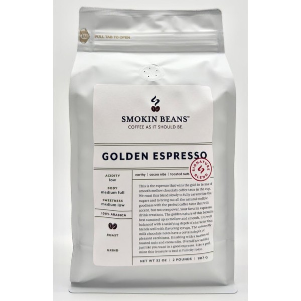 Smokin Beans 2-Pound Golden Espresso Coffee, Our Signature Blend, Full City Roast, Premium Whole Bean Specialty Coffee