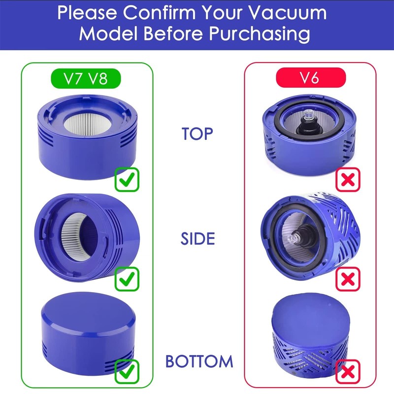- Compatible Models: Post Motor Filter Compatible with Dyson V7 Animal, V7 HEPA, V8 Absolute cordless vacuums and filter parts 967478