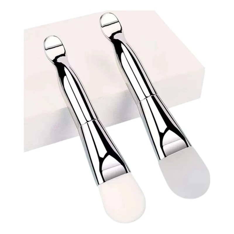 2 Pzs Brochas Con Cucharita Para Facial Spa Crema Blanco