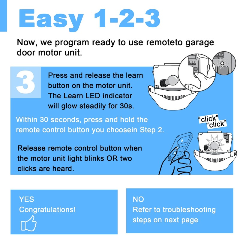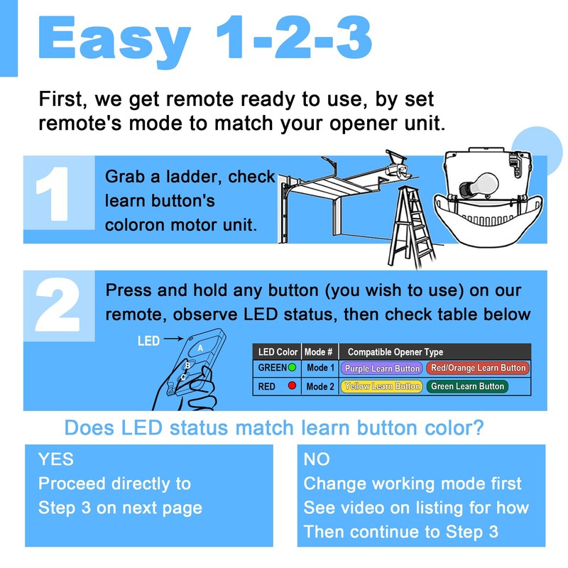 - COMPACT AND PORTABLE: 3-button design makes garage door pairing easy and operates up to three garage doors.
