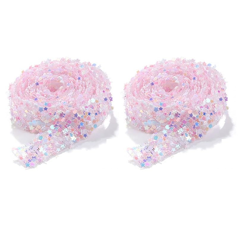 2 Rolls 1 Yard*1.2cm Self-adhensive Resin Sequin Rhinestone Ribbon Light Pink Sequin Diamond Ribbons,Bling Stickers Wrap Roll for Glitter DIY